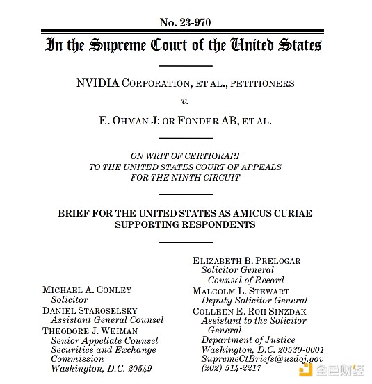 在周三(10月2日)的一份法庭之友陈述书中,美国司法部长伊丽莎白·普雷洛加(Elizabeth Prelogar)和美国证监会高级律师西奥多·魏曼(Theodore Weiman)辩称,对英伟达的集体诉讼具有“足够的细节”,可以免于地区法院的驳回。