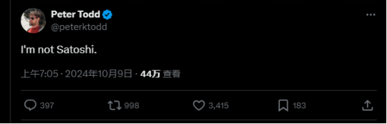 Peter Todd 本人更是莫名其妙,在 HBO 纪录片播放前夕就已在公共平台称「我不是中本聪」,后续更是表示纪录片制片人 Cullen Hoback 的指证毫无根据,论据都是假的,自己仅仅是回复了中本聪的邮件,并讽刺本次纪录片导演,「因拍摄 QAnon 闻名的导演在这里也陷入了 QAnon 式的阴谋论思维。」