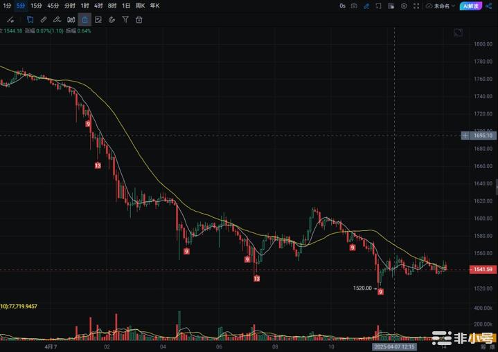 关键要看1520能不能守住,这位置要是破防直接奔着1450去了。今天CME以太期货交割,交割日魔咒叠加美联储缩表预期,空军趁机搞事情。链上数据显示鲸鱼地址最近三天甩卖了2.8万ETH,但某神秘地址却在1520附近连续挂单买入,这波神仙打架散户千万别站队。