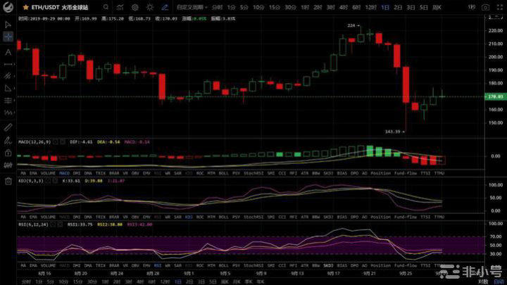 ETH现价:170,上方压力位:180,下方支撑位:160。以太前两天走势均强于大饼收涨2-3个点,但今天走势较弱,可见上方压力较大,散户看涨情绪降低。天图中指标走平,小时图指标下行,预计接下来短时内将震荡下行。操作建议:短线投资者可适当减仓避险,中长线持币观望。