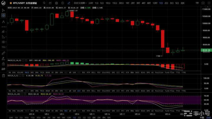BTC现价:8110,上方压力位:8600,下方支撑位:7700。大饼今天缩量震荡,小幅反弹0.5%。天图中指标走平;4小时图和2小时图KDJ下行,预计接下来短时内将震荡调整。操作建议:短线投资者可在8200以上逢高出货,中长线持币观望。