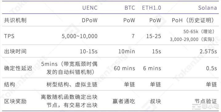 各公链性能对比,来源:UENC, Solana.com, TokenInsight