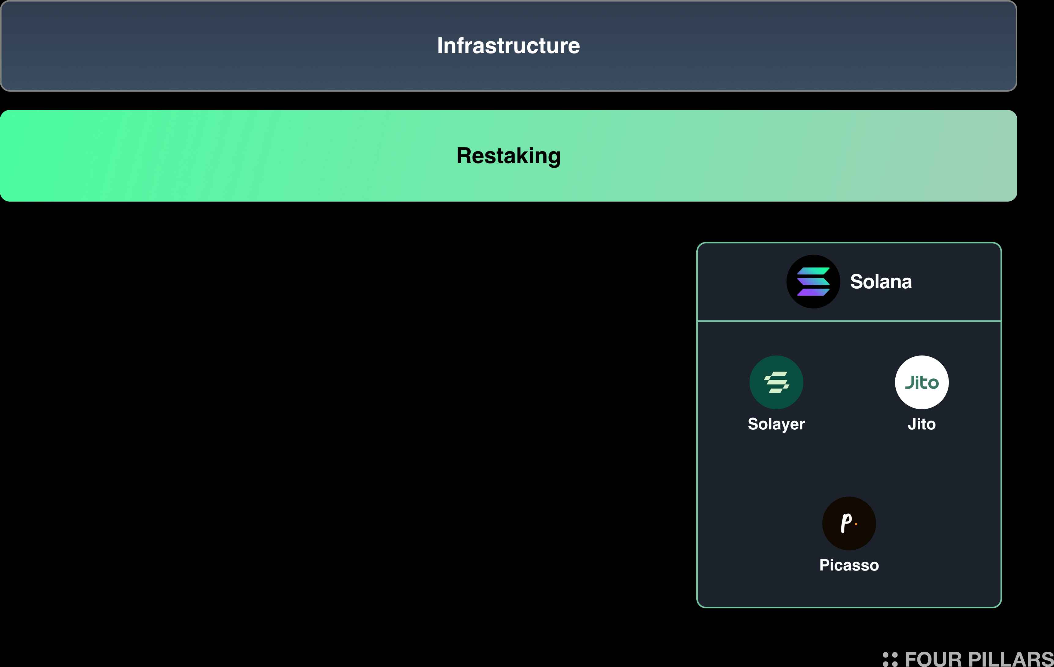 Solana 以其高交易吞吐量和低费用而闻名,这使其成为再质押基础设施发展的理想环境。Solana 生态系统中的多个项目已经采用再质押模型,以充分利用这些优势。