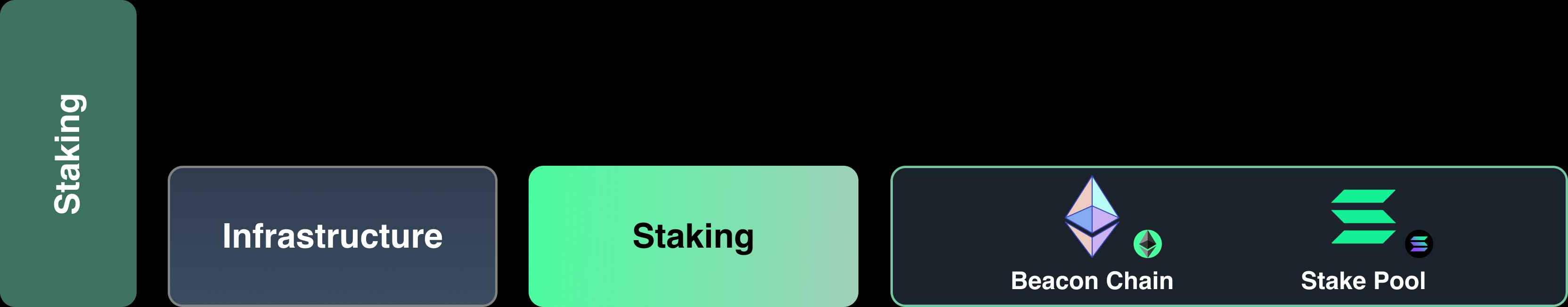 质押基础设施层包括允许参与者质押其本地 Token 的系统,从而提升区块链网络的安全性和效率。这些基础设施是 PoS 共识机制的核心,支持区块验证和生成的去中心化过程。参与者质押其资产成为验证者,帮助维持网络的稳定性并获得奖励。此外,质押基础设施还负责监控验证者的行为,通过削减惩罚不当行为以增强安全性。