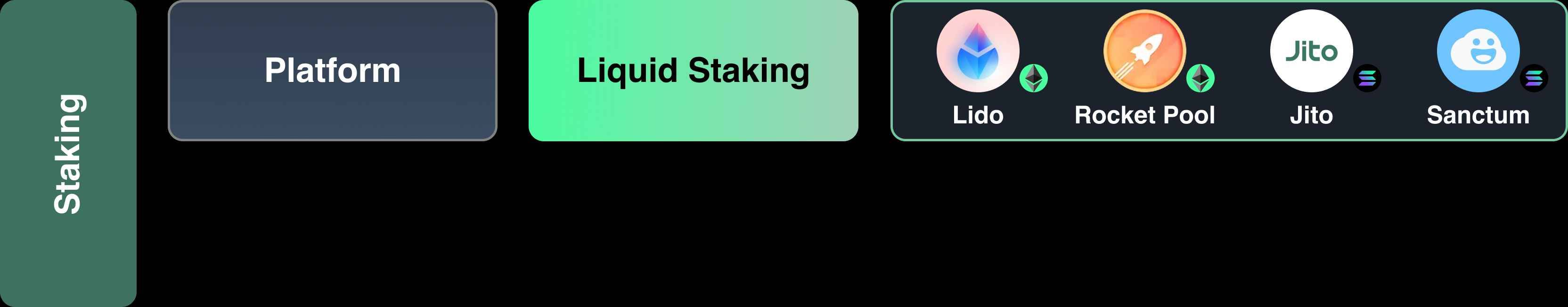 质押平台层包括一些服务,使用户能够在保持资产流动性的同时,为区块链网络的安全和运营做出贡献。这些平台在 PoS 区块链中发挥关键作用,提供简单的服务,允许用户质押本地 Token 并获得奖励。质押平台不仅仅是锁定资产,还提供流动性质押,将质押的资产代币化,使用户能够在 DeFi 服务中使用这些资产。这种结构使用户能够在参与网络运营的同时保持流动性并最大化奖励。通过这些功能,质押平台简化了用户体验,使更多用户更容易参与质押。