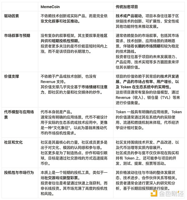 MemeCoin VS 传统加密项目: