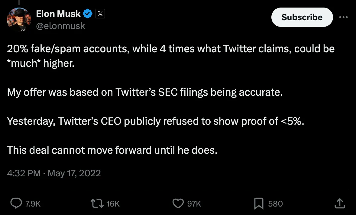 随着 AI 技术的进步,社交网络服务正面临危机,机器人生成的内容变得更加复杂且成本低廉。Elon Musk 报告称,在 X(前身为 Twitter)上,假冒和垃圾账户约占所有用户的 20%。这些账户通过广告和垃圾信息操纵公众舆论并促进欺诈,损害了平台的信誉。