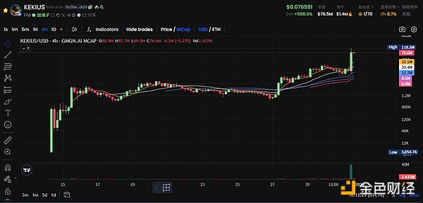 GMGN.AI 数据显示,Kekius Maximus 概念 Meme 的热度在一小时内已经霸榜 Meme 市场。