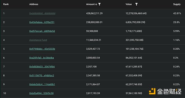 团队和社区总体按照 3:7 的比例分配。当前持币地址情况如下:
