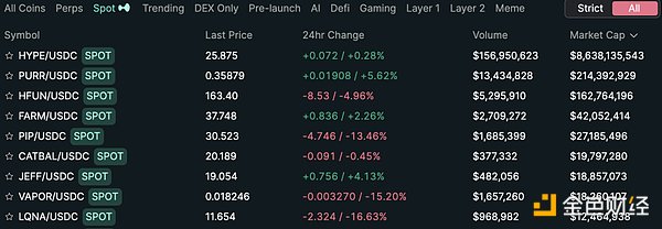 目前 Hyperliquid 的现货交易所只上线符合 HIP-1 标准的 Hyperliquid 的原生资产,不上线其他链的代币。