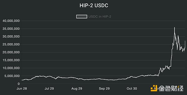 HIP-2 推出之后,诸多新创建的 Hyperliquid 生态代币都选择使用这套 Hyperliquid 的 AMM 机制。目前 HIP-2 总 USDC 量已经超过 2500 万美元。