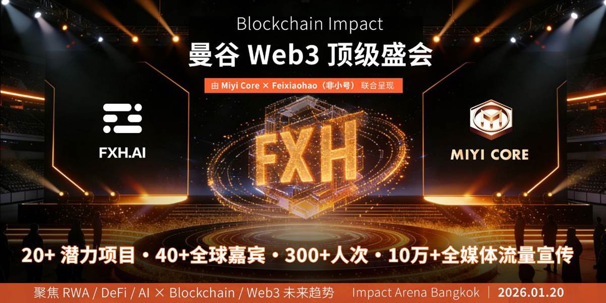 本次大会由 Miyi Core 与 Feixiaohao(非小号) 联合呈现,选址于亚洲最具影响力的会展场馆之一 Impact Arena Bangkok,预计将成为 2026 年初 Web3 行业的重要风向标事件。
