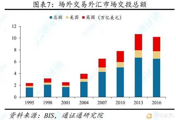 欧美地区在金融衍生品交易中占据主导地位。在交易所期权、期货未平仓合约地区分布中,北美地区优势明显,长期占据超过72%的占比,欧洲以23%的占比也保持稳定。在场外交易金融衍生品市场中,英国一直保持着领先地位。据BIS,在场外交易外汇市场交投总额中,仅英美两国便占据了过半的市场份额,其中,英国以1/3占比领跑。