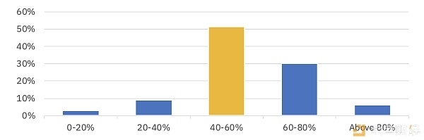 在开展此次调查之时,比特币在全体加密数字资产市场中的市值占比几乎正好为60%,大部分参与者认为比特币将大致维持这一现状或略有下降。