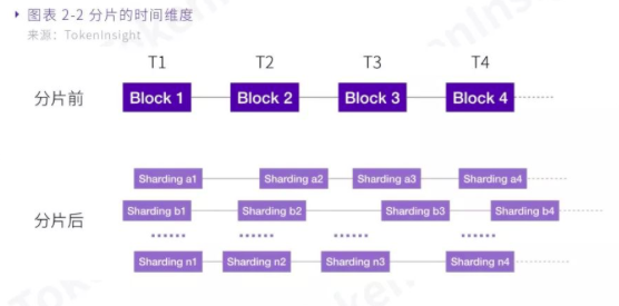 物理空间上,分片是将公链网络中的所有节点划分为不同的分组,每一个分组叫做一个分片。原本公链中所有节点所做的任务是完全相同的,现在将任务进行分组,分配给不同的分片,各个分片处理不同的任务。原来公链网络的性能瓶颈取决于网络中节点的性能,进行分片后,单个分片内的节点仅需承担全网的部分工作,各个分片并行工作,从而提升整个网络的承载能力。假设分片数为n,则每个节点需要承担的的工作量为全网工作量的1/n。同理,全网容量也将变为原来的100 倍。分片是区块链扩容最佳方案,它能在没有提高节点硬件要求且没降低去中心化程度的情况下,实现网络性能和容量的大幅提升。