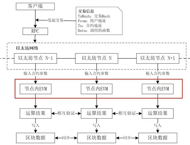 由eWASM代替EVM——提升智能合约的兼容性和执行效率虚拟机是类似于操作系统的小的程序,是处理智能合约部署和执行的地方。以太坊系统上的所有节点都需要运行智能合约来执行最终在区块链上的交易,每个完整节点里面都会运行一个虚拟机,所有节点会执行同样计算,之后所有节点来比对这个结果并写入区块数据中。