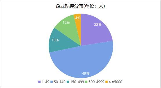 根据国家工商总局企业信息查询平台今年6月份调取的数据,全国各地区区块链企业的分布数量和分布比例上来看,我国从事提供区块链产业底层技术平台服务、应用产品、行业技术解决方案服务等业务,具有投入产出的区块链企业共704 家,主要聚集在北京、上海、广东、浙 江、四川、江苏等地。北京、上海、广东、浙江、四川、江苏等地共有区块链企业 638 家,约占全国区块链企业总数的九成。根据零壹智库 统计的数据,企业人数在50-149人的占总数的40.06%,企业规模普遍偏小。