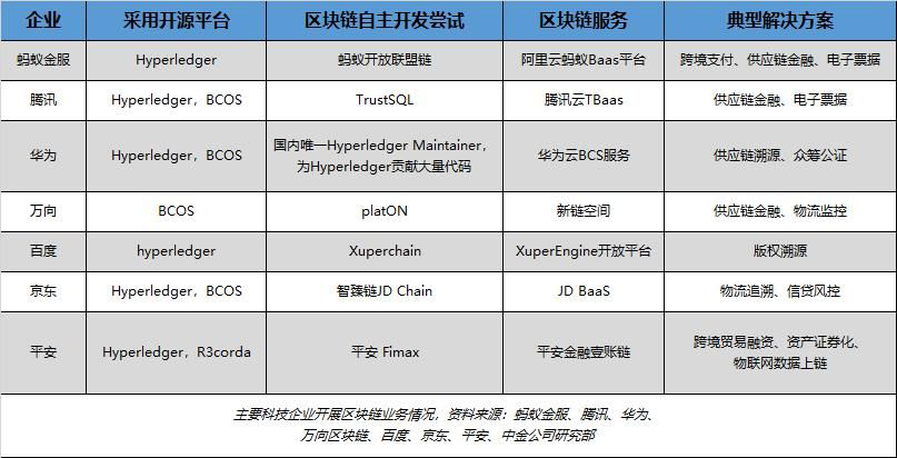 2)蚂蚁区块链、平安、腾讯、万向等提供的区块链平台;