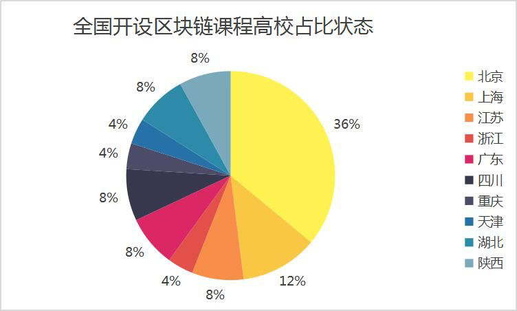截至11月10日,目前已经有30所左右的高校开设了相关课程,其中大部分集中在北京、上海,北京高校更是占比达到42%。随着区块链上升为国家战略,相信未来开设相关课程的人会逐步增多,为今后行 业的发展奠定基础。