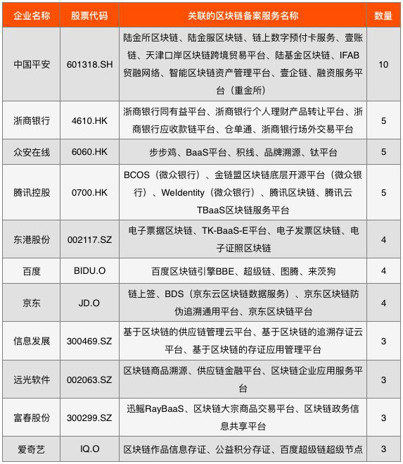 (一)42家上市企业:中国平安关联区块链备案信息达10条