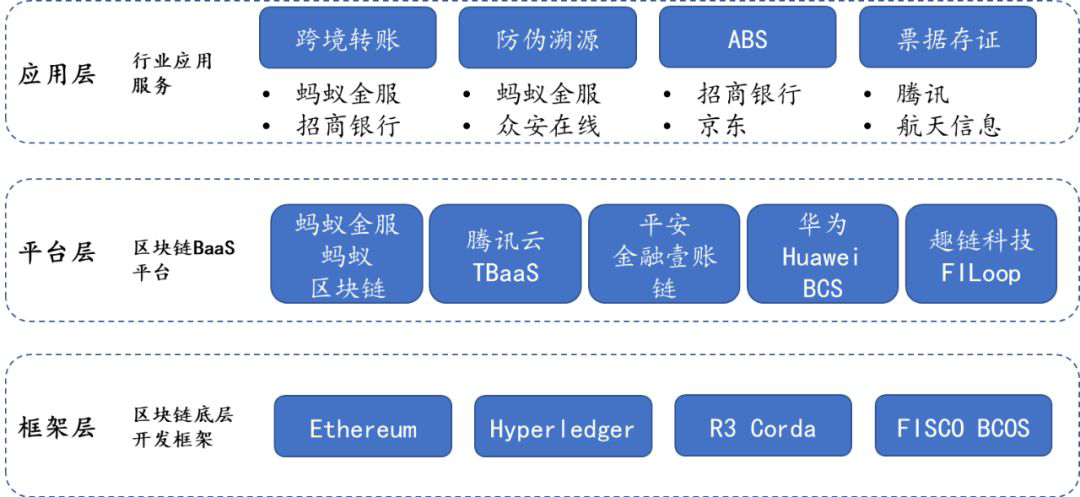 中央指出,区块链技术已经不仅局限于加密资产行业,其在金融科技的前沿创新领域,诸如清结算、支付、电子发票、供应链金融、贸易融资等,均开始发挥积极的作用。目前,主要的区块链开源架构有比特币、以太坊、Hyperledger Fabric、R3 Corda 等,中国国内则有蚂蚁金服、平安、腾讯、万向等主要的区块链平台服务提供商。