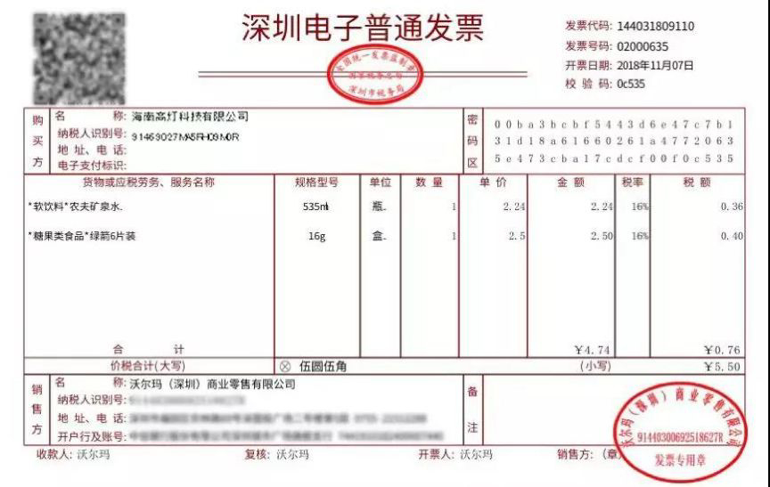 11 月,深圳区块链电子发票正式落地全球零售企业沃尔玛。