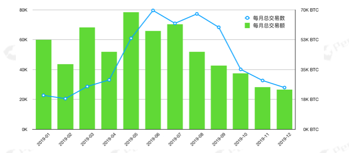 图十 2019年每月流入暗网的交易数和交易额