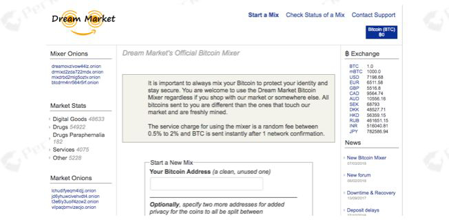 图九 Dream Market比特币混币服务页面
