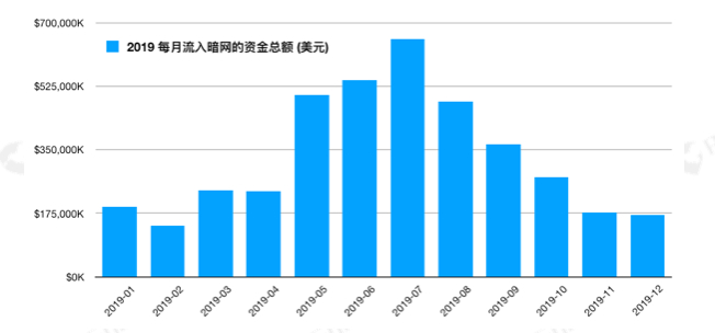 图十一 2019年每月流入暗网的资金总额
