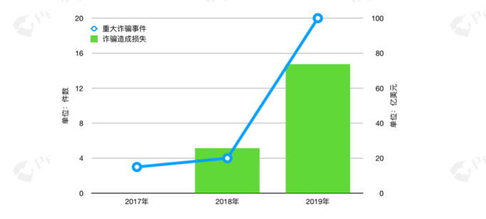 2019年以来,整个区块链生态经过一两年的黑客攻击市场教育,开发者整体安全防御举措有所提高,整体上,因漏洞产生的安全事件减少了。然而却集中爆发了一批,包括 OneCoin、PlusToken、TokenStore、波场超级社区等在内的资金盘项目。数据显示,2019年因诈骗造成的损失金额达到了惊人的73.74亿美元,相较2018年,增长了近48亿美元。这是由于数字资产市场有强大的财富效应,对普通用户而言,技术和参与门槛相对较高,这给了一些投机分子炮制各种骗局的可能性。