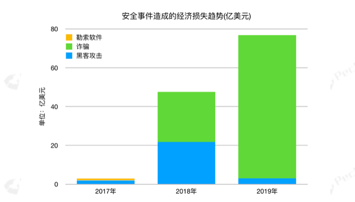 重大安全事件和损失情况:2017年共发生重大安全事件11起,共计损失2.94亿美元; 2018年共发生重大安全事件46起,共计损失47.58亿美元。2019年共发生重大安全事件63起,总共损失达到了76.79亿美元。