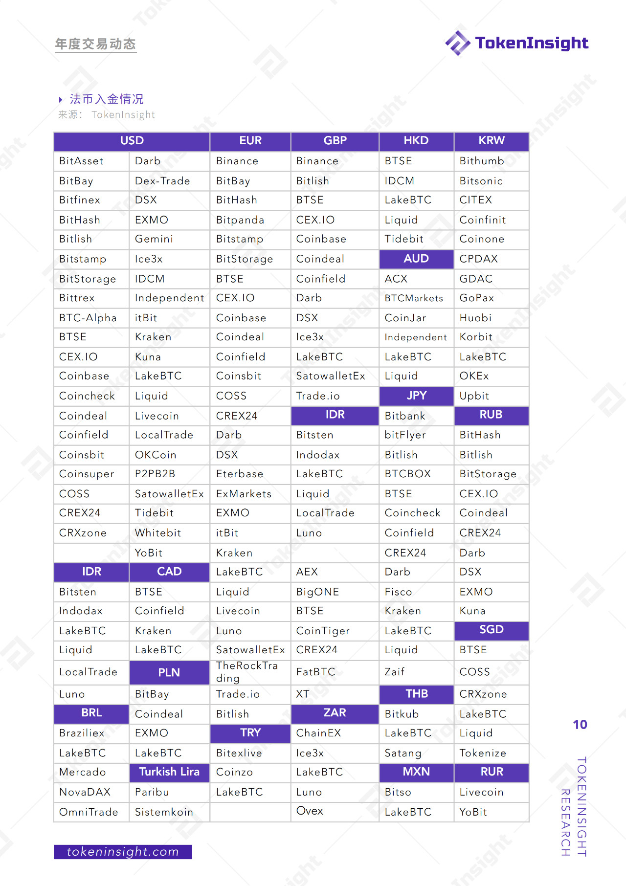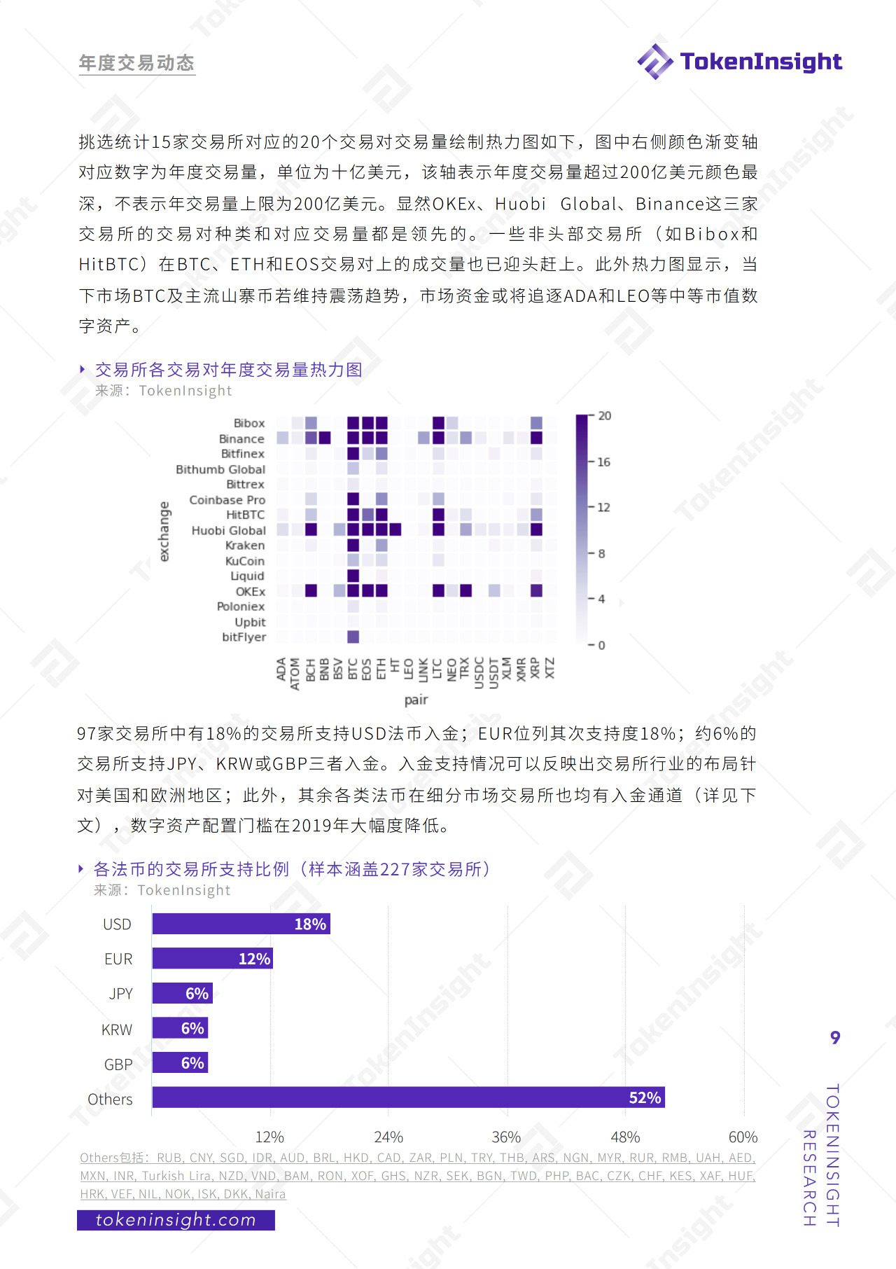 11. 交易所行业的布局针对美国和欧洲地区;各类法币在细分市场交易所也均有入金通道,数字资产配置门槛在2019年大幅度降低。