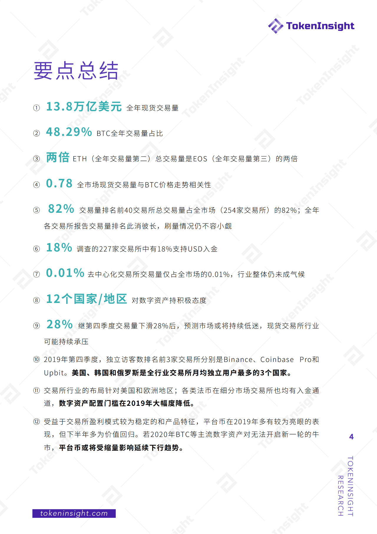 现货交易所研究报告:2019年总交易量为13.8万亿美元,BTC占比48.29%