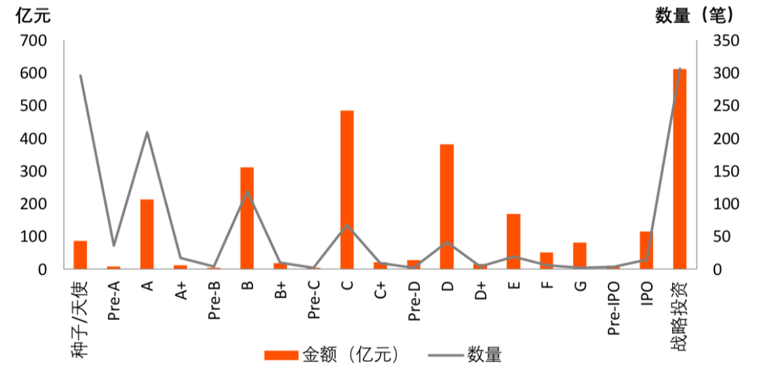 3. C轮前融资数量占59%,融资金额占25%