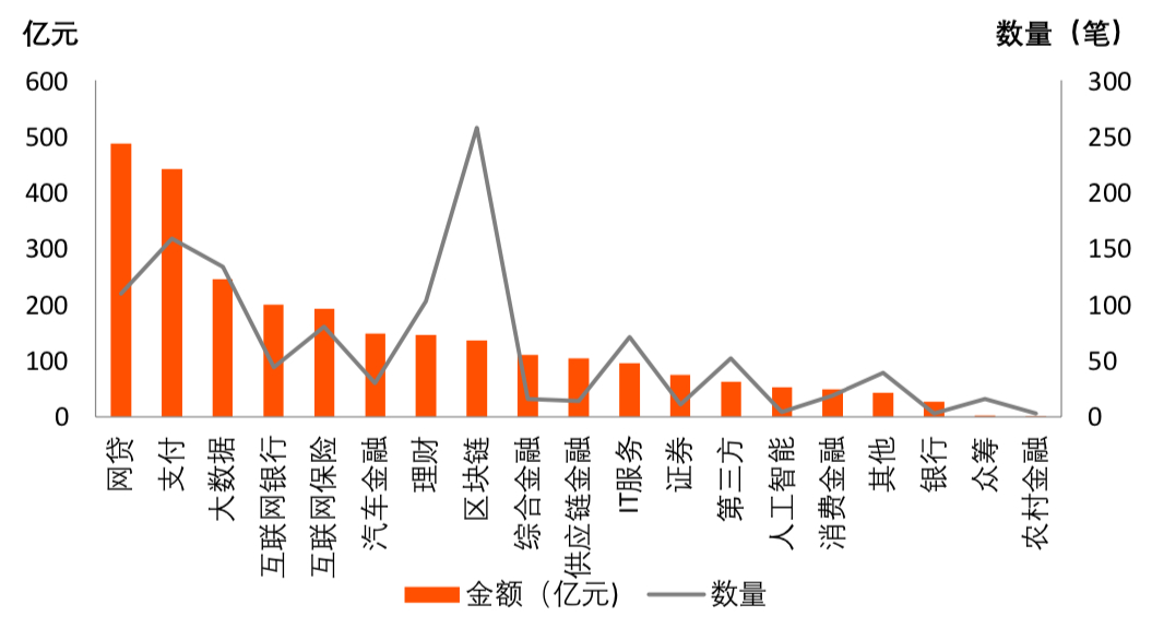 2. 网贷和支付领域受资本热捧,区块链投融资数量独占鳌头