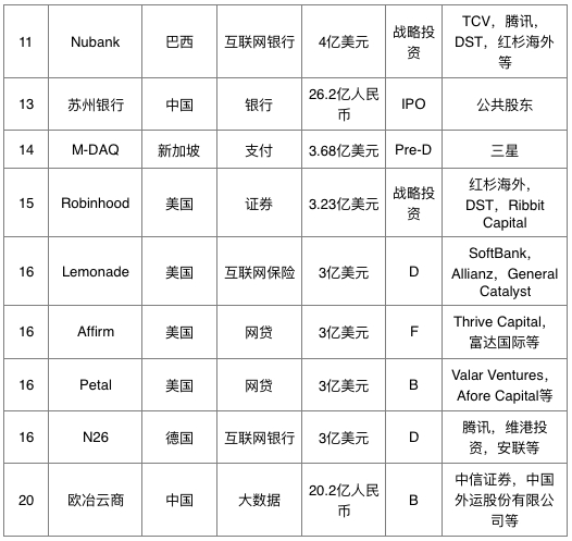 四、2019年全球金融科技融资Top20榜单