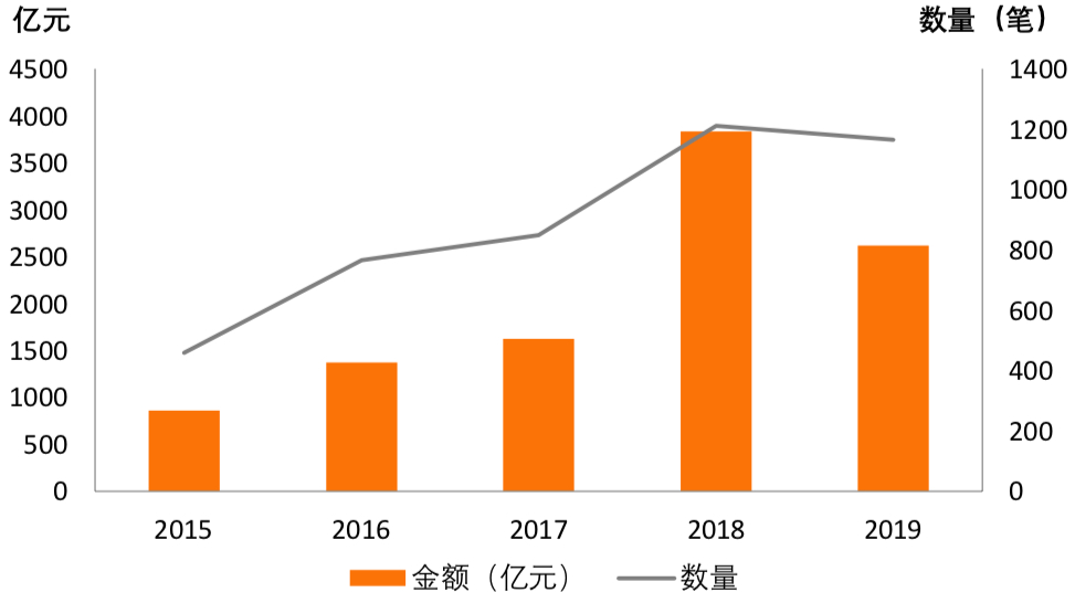 图3:2015~2019年全球金融科技融资数量和金额