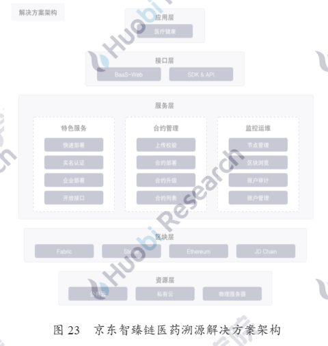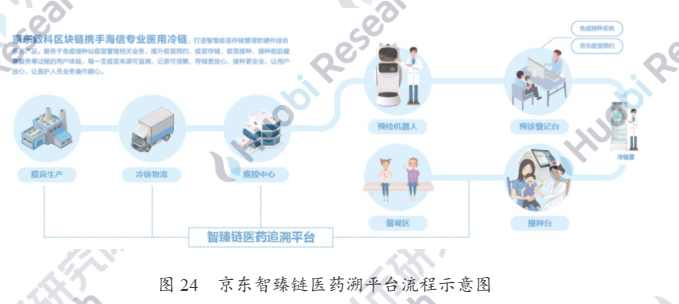 京东智臻链医药追溯平台:京东数科推出基于区块链的智臻链医药追溯平台,通过该平台提供智慧疫苗管理软硬件解决方案,确保疫苗从生产、流通到使用等全流程的信息透明流动,对每一只疫苗的数据进行记录,对其来源进行追溯,保证疫苗的品质与安全性,让终端接种更安全,为消费者的医药安全保驾护航。