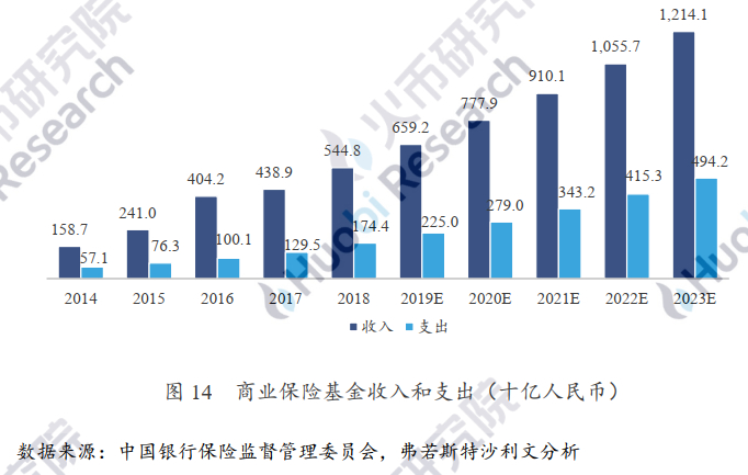 当前,我国商业保险高速发展。2018年商业保险基金实现保费收入5,448亿元,2014年至2018年健康险保费收入复合年增长高达36.1%。