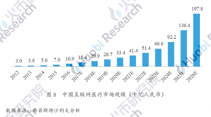 根据弗若斯特沙利文的预测,中国互联网医疗市场规模将在2019年达到267亿人民币,并在2026年增长至1,978亿人民币,呈稳定增长趋势。