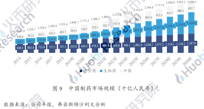我国的制药市场按照药物种类,可分为化学药、中药及生物药,其中生物制剂为增长最快的药物类型,2014年至2018年的复合年增长率为22.4%,远高于全行业增长水平。