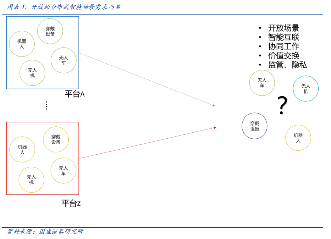 但智能时代,终端的智能是重要性不断提升(尤其是边缘计算和分布式AI的助推下),不能总完全依赖云中心提供“思考与决策”;AIoT的发展势必助推网络越来越分散,终端拥有更高的隐私要求和智能算法,开放的场景下,智能终端之间可能随时在物理空间或网络上相遇,产生交换。未来的网络是分布式开放化的,所以我们无法接受一台阿里巴巴的无人驾驶汽车行驶到一个售货机面前因为无法使用微信支付的尴尬、在一些特殊场景如紧急情况下智能终端之间不能奢求都来自同一家云平台的控制才能够协同工作。尤其是一些特殊而紧急的场景下,智能终端之间无法有效“对话”、协调工作是不可接受的,更开放的、智能协同要求更高的场景需求会越来越突出。