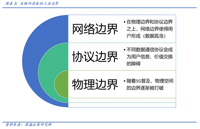 数据通信协议的不同可能会带来协议层面的交换障碍;而网络边界对互联网发展的闲置则日益突出——所谓网络边界指的是不同网络协议或者更广义的不同网络账户体系之间的边界,例如,同一台手机里安装了各种应用App,但不同互联网应用之间如微信与支付宝账户之间无法交互,甚至连基本的数据共享都无法做到。我们可以进一步想象,未来的智能世界,两个终端用户(可能是机器人、无人驾驶汽车等等)由于网络边界的存在(分属不同的核心厂商体系),根本无法进行数据层面的交互,这算是智能吗?当今各个领域的实体在不同程度上垄断着各自用户体系的数据,用户账户之间无法突破网络边界进行数据信息和价值的交互,这只是各自云中心遥控下的控制。