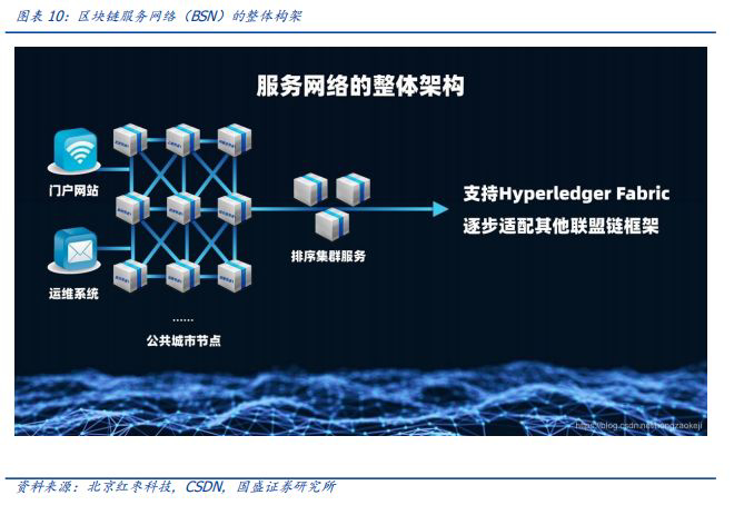 考虑到分布式智能在物理组网方面的基础需求,将催生相关基础网络服务。市场一直期待区块链的落地应用,而我们认为物联网与区块链有着天然的联系,未来“区块链 物联网”将成为标配。2019年10月15日,由国家信息中心牵头,中国银联与中国移动等将共同发布区块链服务网络(BSN)。目的是要做成全行业一致认可、开放包容、业务创新、技术先进、标准完善的国家级区块链服务基础设施。BSN平台不聚焦业务本身,它是聚焦在技术底层,为大家提供真正的基础设施;其组成比较简单,把中国移动全国各地的云资源用区块链的方式串在一起,给想用区块链的服务方、应用方、开发方提供低成本的基础设施服务。相应的开发者可以在网络上发布自己的应用,业务方有自己的业务需求理论上也都可以使用这样的网络。12月1日,首届区块链服务网络合作伙伴大会暨区块链服务网络助力社会治理和城市大脑下城平台试点启动仪式在杭州下城区举行。会上,区块链服务网络(BSN)助力社会治理和城市大脑下城平台试点正式启动,同时宣布区块链服务网络(BSN)全球运维中心和合作伙伴大会永久会址落户杭州。