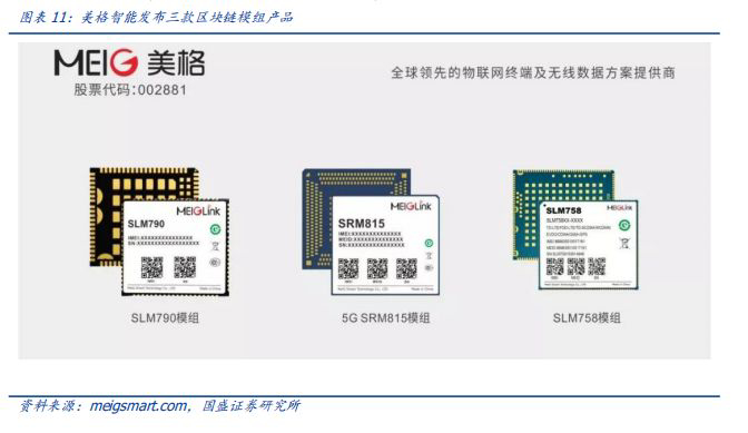 物联网智能终端数据上链为最迫切需求。此前不久,美格、移远等企业就已发布了全球首批多款区块链模组。作为区块链和物联网融合创新的重要抓手,区块链模组将大大简化行业客户基于物联网设备的“区块链 ”应用试点,在原有物联网设备数据上云业务的同时,快速改造实现物联网设备数据的上链业务。行业客户可以更多地聚焦在如何依托区块链能力在行业场景上实现商业模式创新。作为最直接的数据产生源,物联网终端数据上链是最为分布式智能的最基础要求,物联网与区块链、智能AI的对接成为硬件构架的最基础变化,随着应用场景的不断丰富,物联网行业将迎来新的场景和需求。
