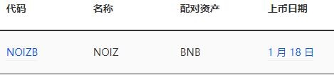 2020 年 1 月,币安去中心化交易平台 上活动较少,仅上架了 1 个交易对和 1 种资产(NOIZB)。截止 2019 年 1 月 31 日,币安去中心化交易平台总计上架了 122 个交易对。