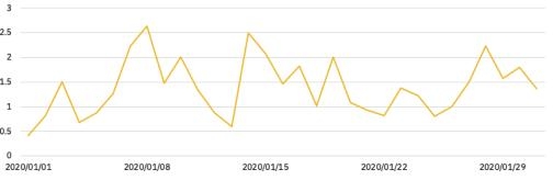 图 2 -币安去中心化交易平台 2019 年 8 月以来日交易量(单位:100 万美元)