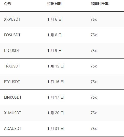 币安合约交易平台以上线新产品的方式迎接新的十年。2020 年 1 月新上架 8 个交易对,使数字货币合约交易产品的数量增加到 11 种。