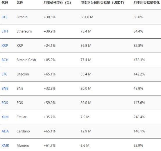 表 2 – 2020 年 1 月 Binance.com 数字资产价格上涨前 3 位