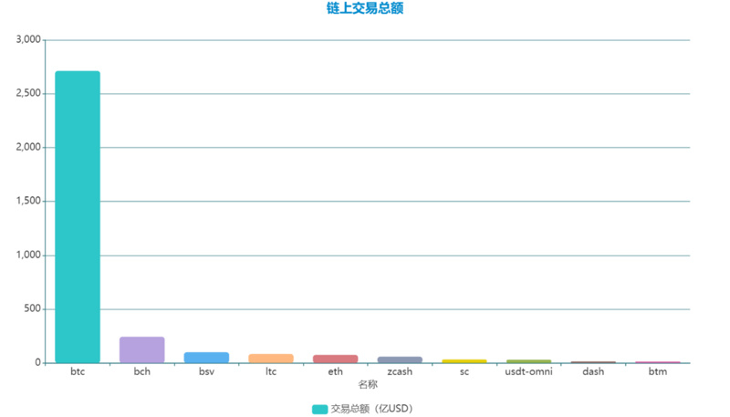 比特币网络在一月份共计处理了价值2712.79亿美元的链上交易,这一数字大到让Excel软件默认显示了2.71279E+11的科学计数法。BCH和BSV分列二三位的事实也足以告诉大家比特系共识的强大。